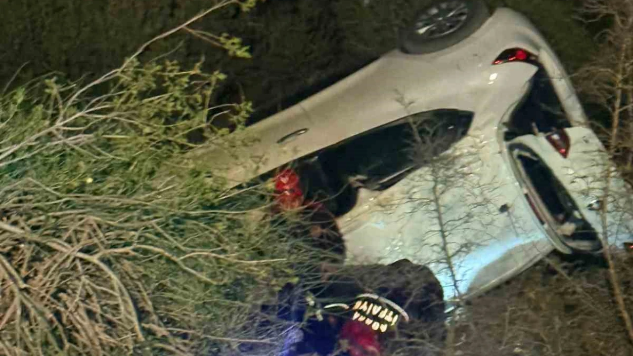Otomobil Şarampole Devrildi, Sürücü Kurtarıldı