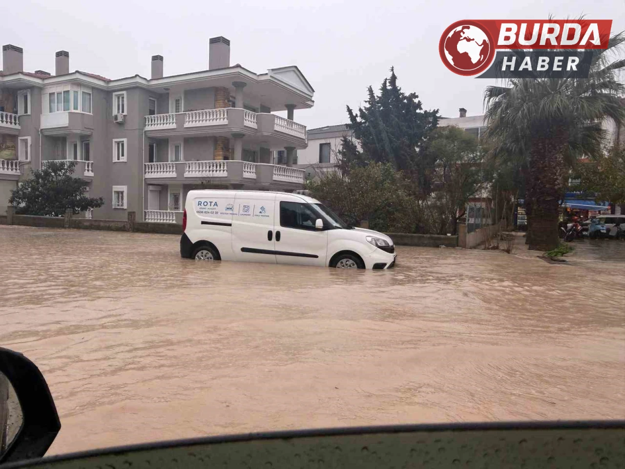 İzmir'in turistik ilçesi Çeşme, öğle saatlerinde etkili olan sağanak yağışın ardından sular altında kaldı. Yoğun yağışın etkisiyle birçok cadde ve sokak adeta dereye döndü. Rögarların taşması nedeniyle oluşan su birikintileri, sürücülere zor anlar yaşattı.