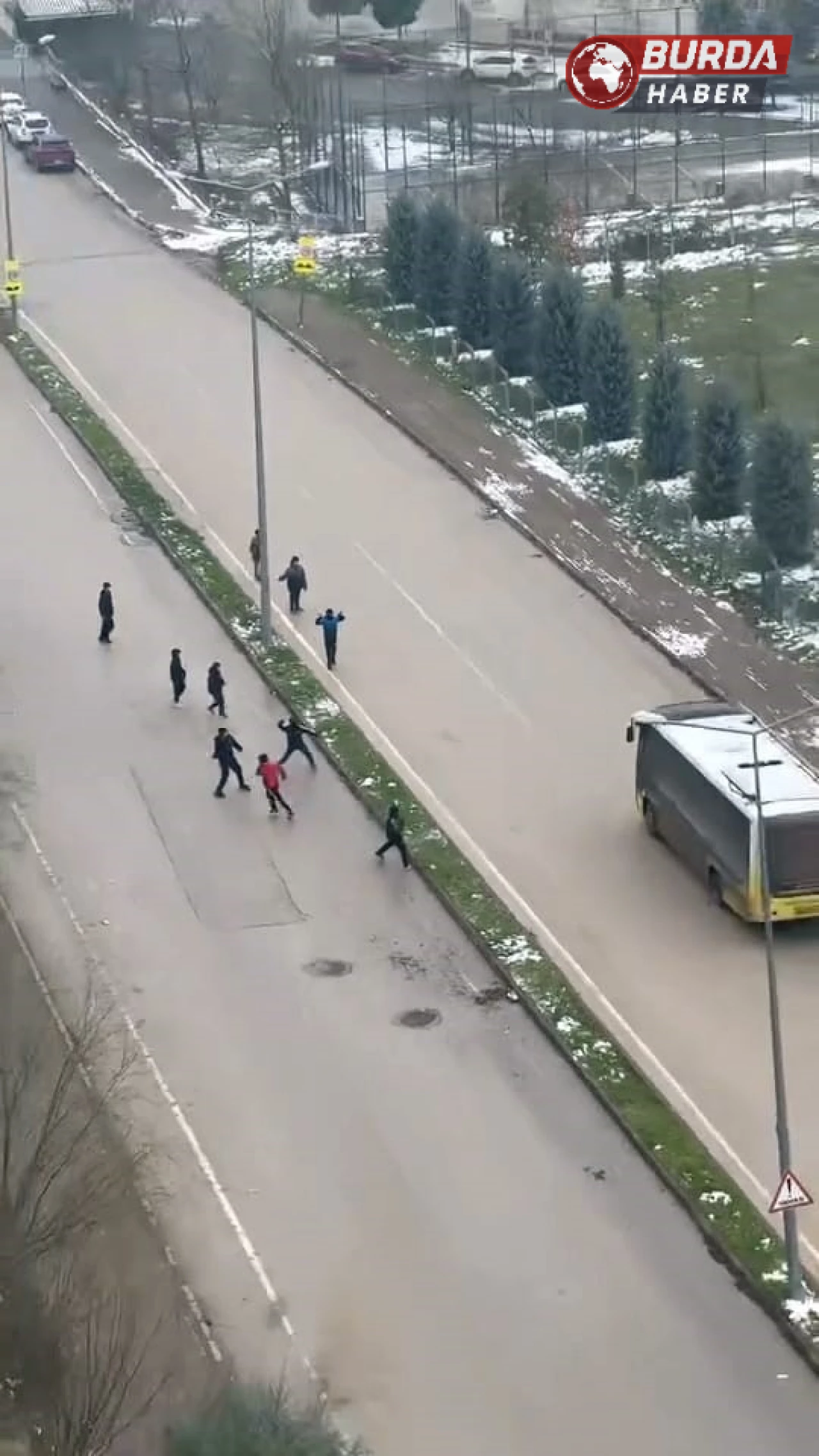 İddiaya göre, yaşları küçük yaklaşık 10 çocuk, caddeden geçen özel halk otobüslerinin camlarına kar topu attı. Kar toplarının otobüslere isabet etmesi üzerine bazı şoförler duruma tepki gösterdi.