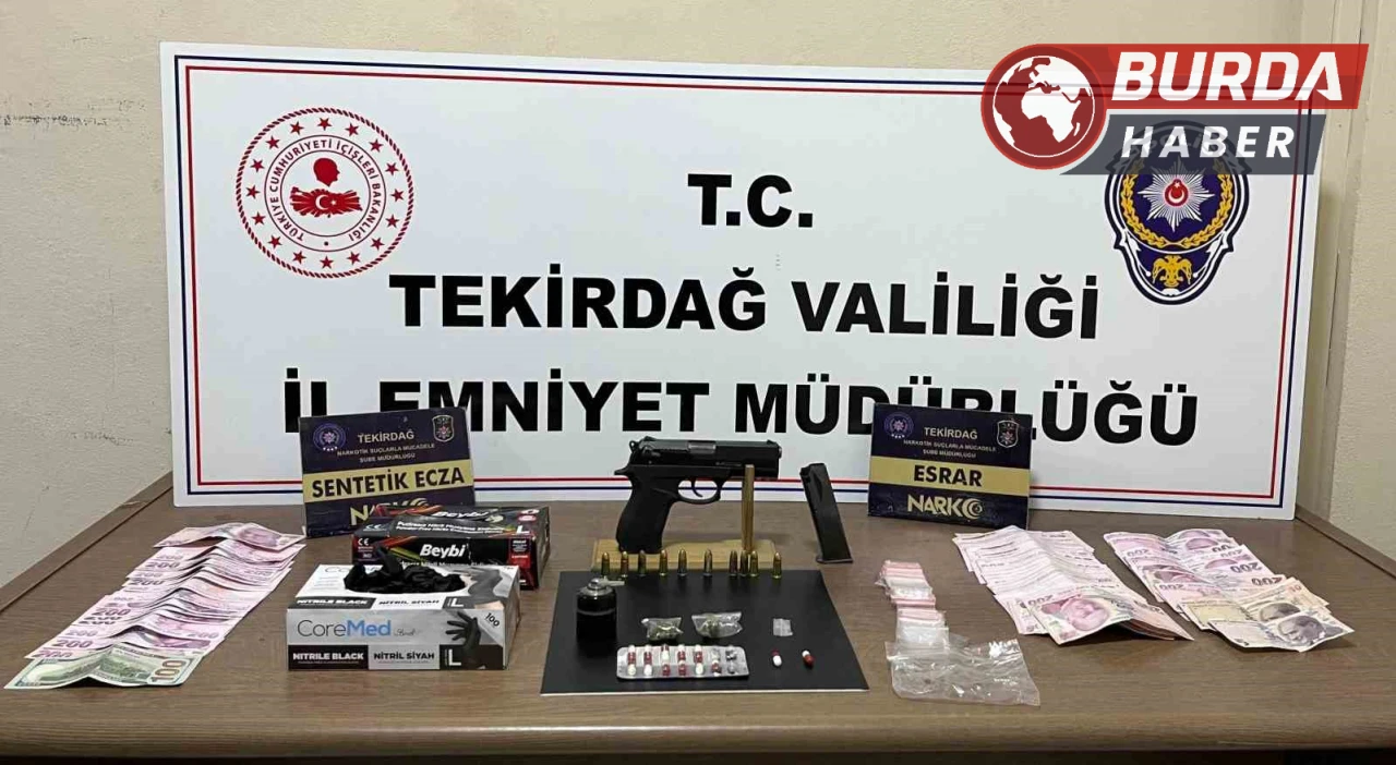 Kapaklı ilçesinde gerçekleştirilen çalışmada, uyuşturucu madde ticareti suçundan kırmızı bültenle aranan G.G. yakalanarak gözaltına alındı. Operasyon kapsamında sokak satıcılarından 851 gram çeşitli uyuşturucu madde, 2 bin 665 adet uyuşturucu hap, 3 adet ruhsatsız tabanca ile uyuşturucu ticaretinden elde edildiği değerlendirilen 115 bin 205 TL ele geçirildi.