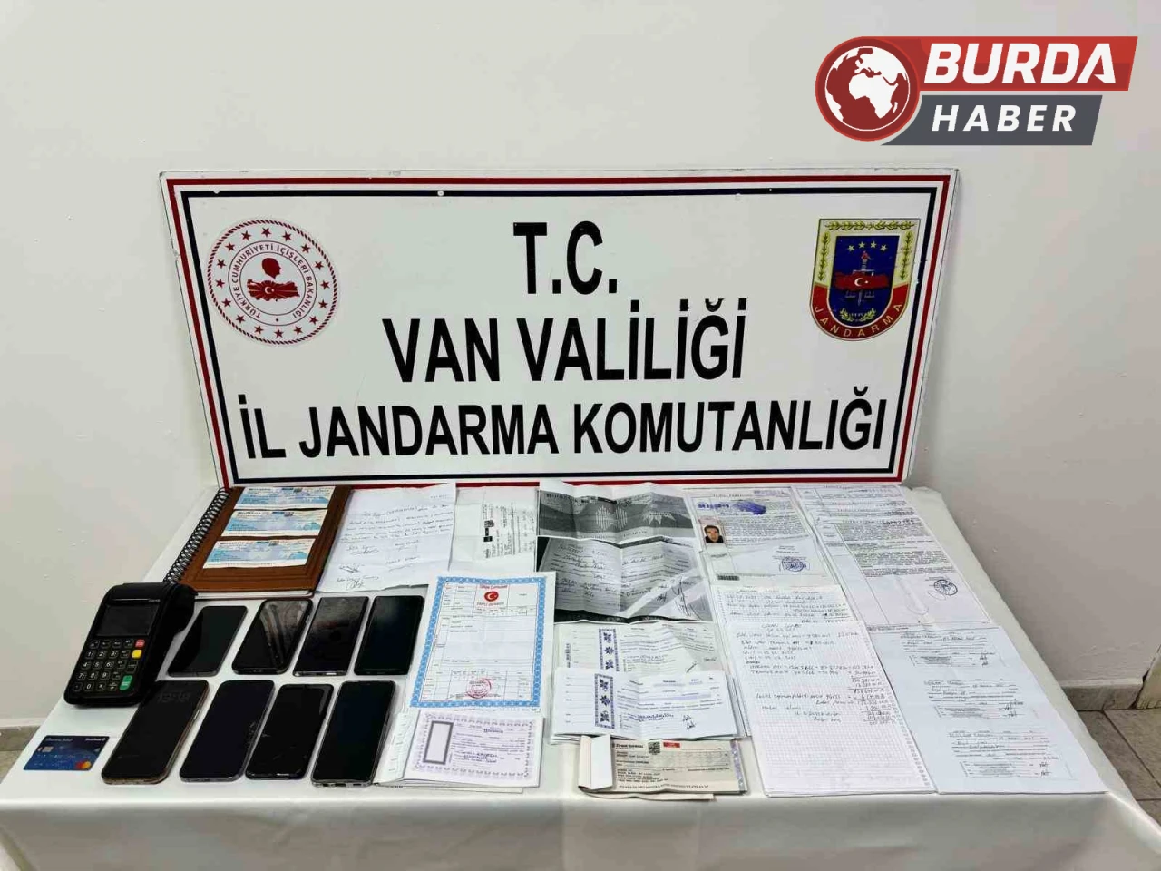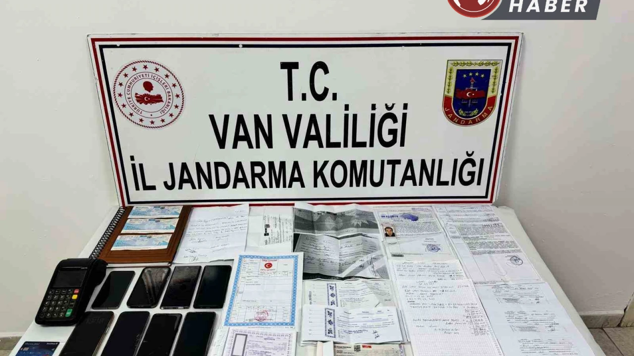 Van Valiliğinden yapılan açıklamaya göre, İl Jandarma Komutanlığı Kaçakçılık ve Organize Suçlarla Mücadele (KOM) Şube Müdürlüğü, İpekyolu, Tuşba ve Özalp İlçe Jandarma Komutanlıkları tarafından gerçekleştirilen operasyonda birçok belge ele geçirildi. Operasyon kapsamında; 28 adet senet, 8 adet çek, 1 adet çek fotokopisi, 1 adet çek defteri, 1 adet tapu senedi, 33 adet araç alım-satım evrakı, 2 adet vekaletname, 15 adet kullanılmış çek dip koçanı, 5 adet bitmiş çek defteri koçanı, 31 sayfa alacak/verecek listesi dokümanı, 2 adet alacak/verecek not kağıdı, 8 adet cep telefonu, 8 adet sim kart, 1 adet yazarkasa pos cihazı ve 1 adet başkasına ait kredi kartı ele geçirildi.