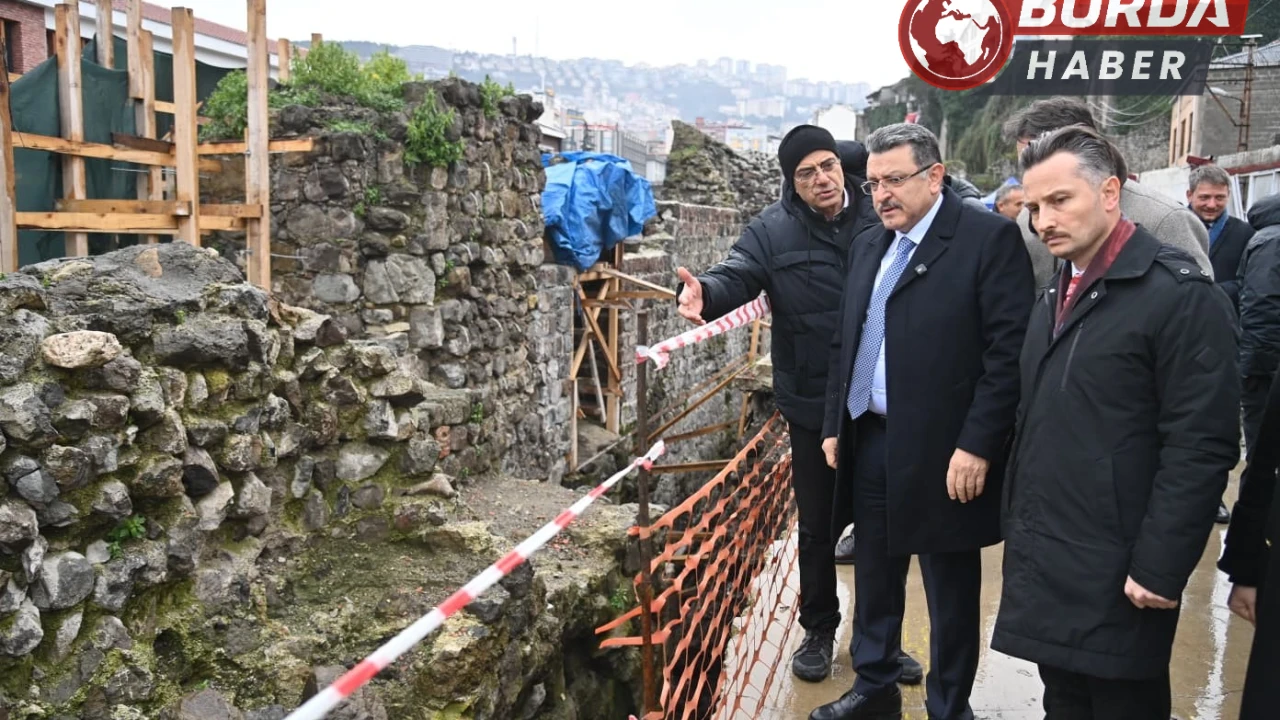 Trabzon Büyükşehir Belediye Başkanı Ahmet Metin Genç, Pazarkapı Mahallesi'nde yürütülen ve büyük oranda tamamlanan sur duvarı restorasyon çalışmalarını yerinde inceledi. Arkeolog Vedat Keleş ve Koruma Uzmanı Yaşar Selçuk Şener, Başkan Genç'e çalışmalar hakkında detaylı bilgi verdi.