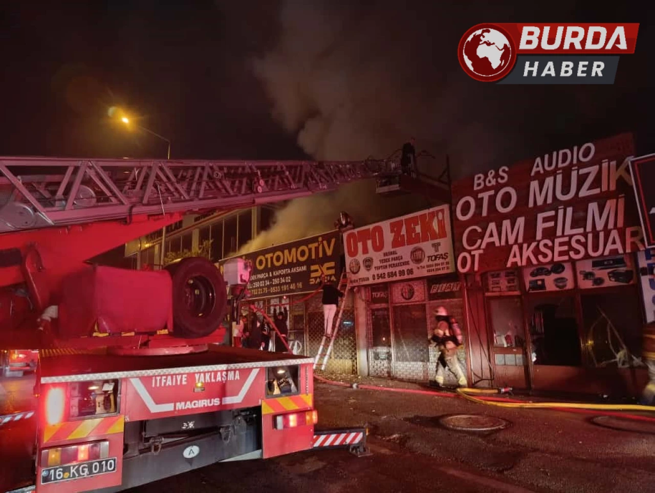 Yangın, Bursa'nın merkez Osmangazi ilçesi Küplüpınar Mahallesi Aksu Sokak'taki otomotiv yedek parça satışı yapılan bir iş yerinde henüz belirlenemeyen bir nedenle başladı. Alevler, iş yerinden yan tarafta bulunan 3 dükkana da sıçradı.