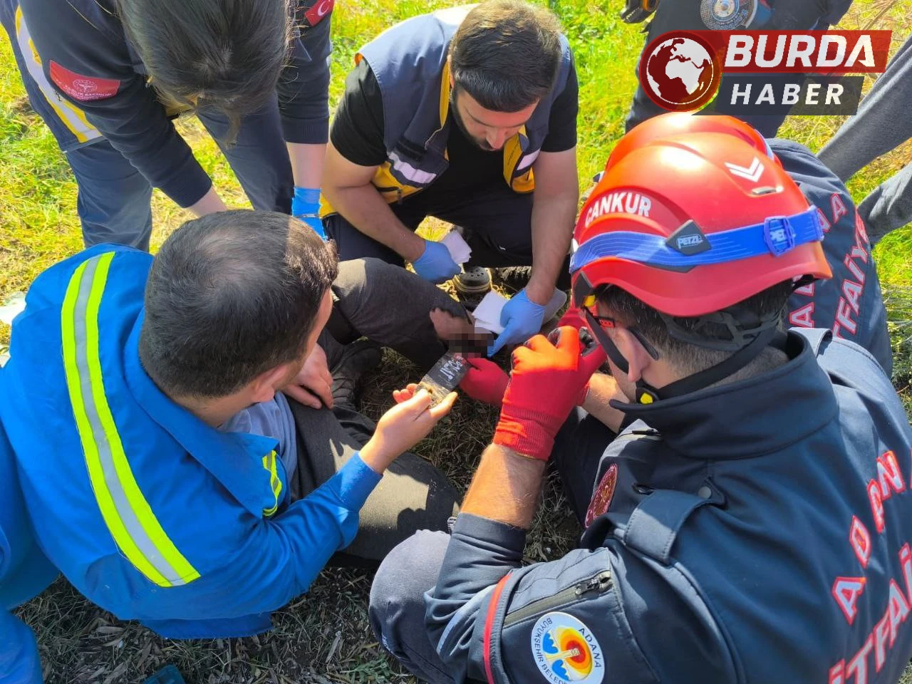 112 Acil Çağrı Merkezi'ne yapılan ihbarın ardından olay yerine gelen ekipler, sıkışan kişinin ayağını kurtarmak için çalışmalara başladı. Motorlu testereyle sıkışan şahısın kurtarılması için ekipler titizlikle çalıştı.