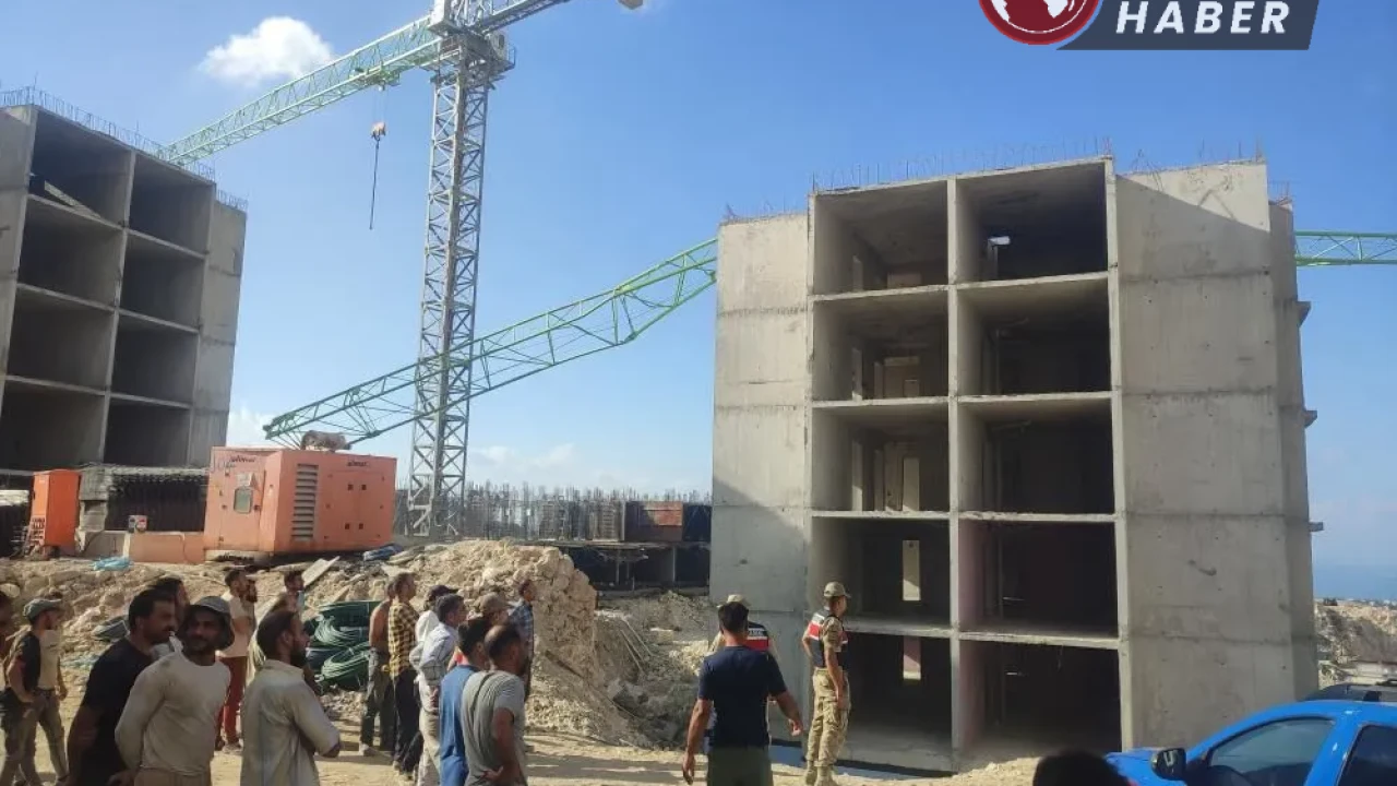 Hatay’ın İskenderun ilçesinde meydana gelen olayda, temel açma çalışmaları sırasında patlatılan dinamit nedeniyle kule vincinin sarsılarak yıkılması anı görüntülendi.