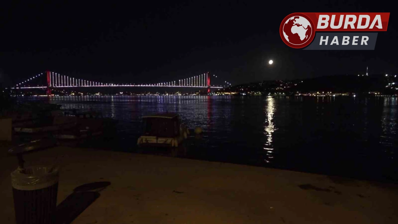 İstanbul, gece saatlerinde muhteşem bir doğa olayına ev sahipliği yaptı. Dolunayın gökyüzünde belirmesi ve deniz yüzeyine yansıyan yakamozun birleşmesi, eşsiz bir manzara oluşturdu. Bu görsel şölen, 15 Temmuz Şehitler Köprüsü'nün ışıklarıyla daha da etkileyici hale geldi.
