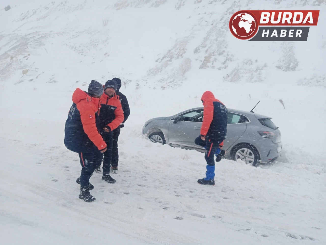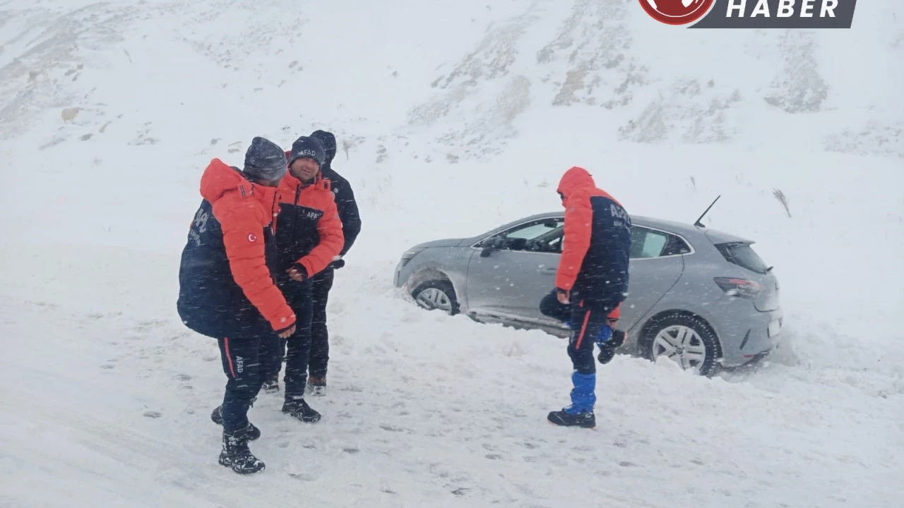 AFAD İl Müdürlüğü koordinesindeki ekipler, zorlu hava koşullarına rağmen yolda mahsur kalan araçlara müdahale etti. Ekiplerin titiz çalışması sonucunda araçlar güvenli bir şekilde kurtarıldı.