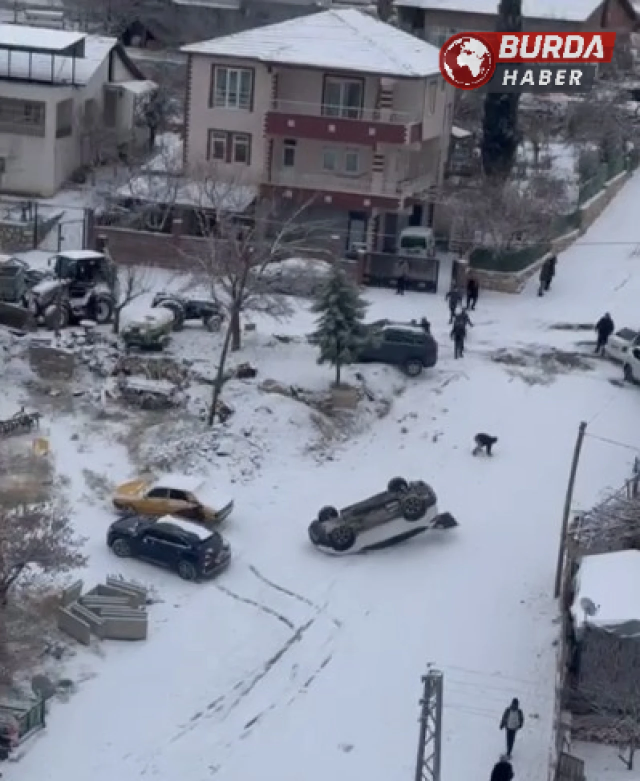Edinilen bilgilere göre, kar yağışının ardından oluşan buzlanma sebebiyle sürücüsünün direksiyon hakimiyetini kaybettiği araç, bir park halindeki araca çarparak onu devirdi. Çarpmanın etkisiyle park halindeki araç ters dönerek ilginç bir görüntü oluşturdu. Kazanın yaşandığı anlar ise çevredeki vatandaşlar tarafından cep telefonlarıyla kaydedildi.