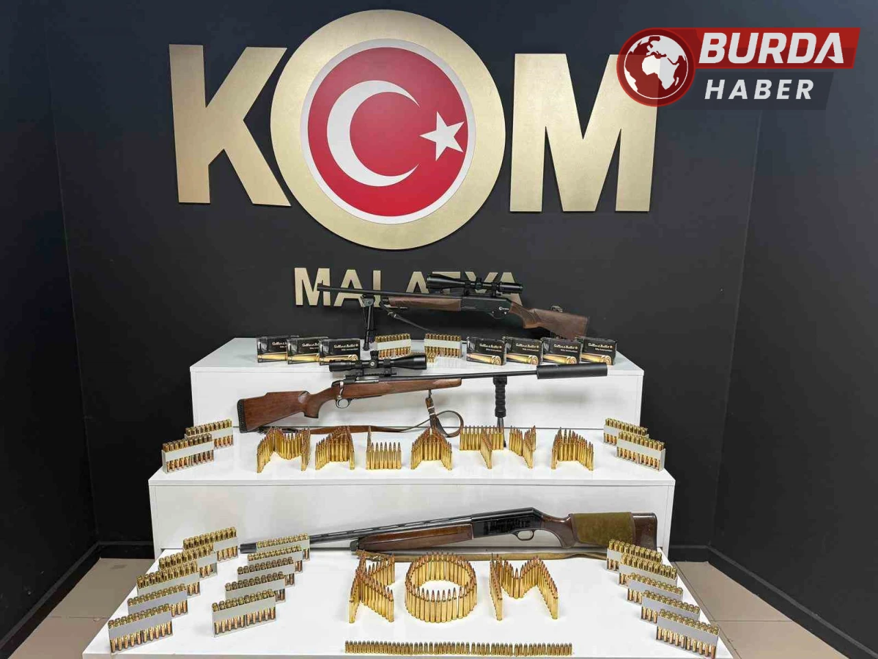 Malatya’da, İl Emniyet Müdürlüğü Kaçakçılık ve Organize Suçlarla Mücadele (KOM) Şube Müdürlüğü ekipleri, Battalgazi ve Kale ilçelerinde ruhsatsız silah satışı yaptığı belirlenen şahıslara yönelik operasyon düzenledi. Operasyonda 1 adet ruhsatsız yivli tüfek, 2 adet ruhsatsız tabanca, 2 adet ruhsatsız yivsiz tüfek, 1 adet havalı tüfek, 838 adet fişek ve 20 adet sentetik ecza maddesi ele geçirildi.