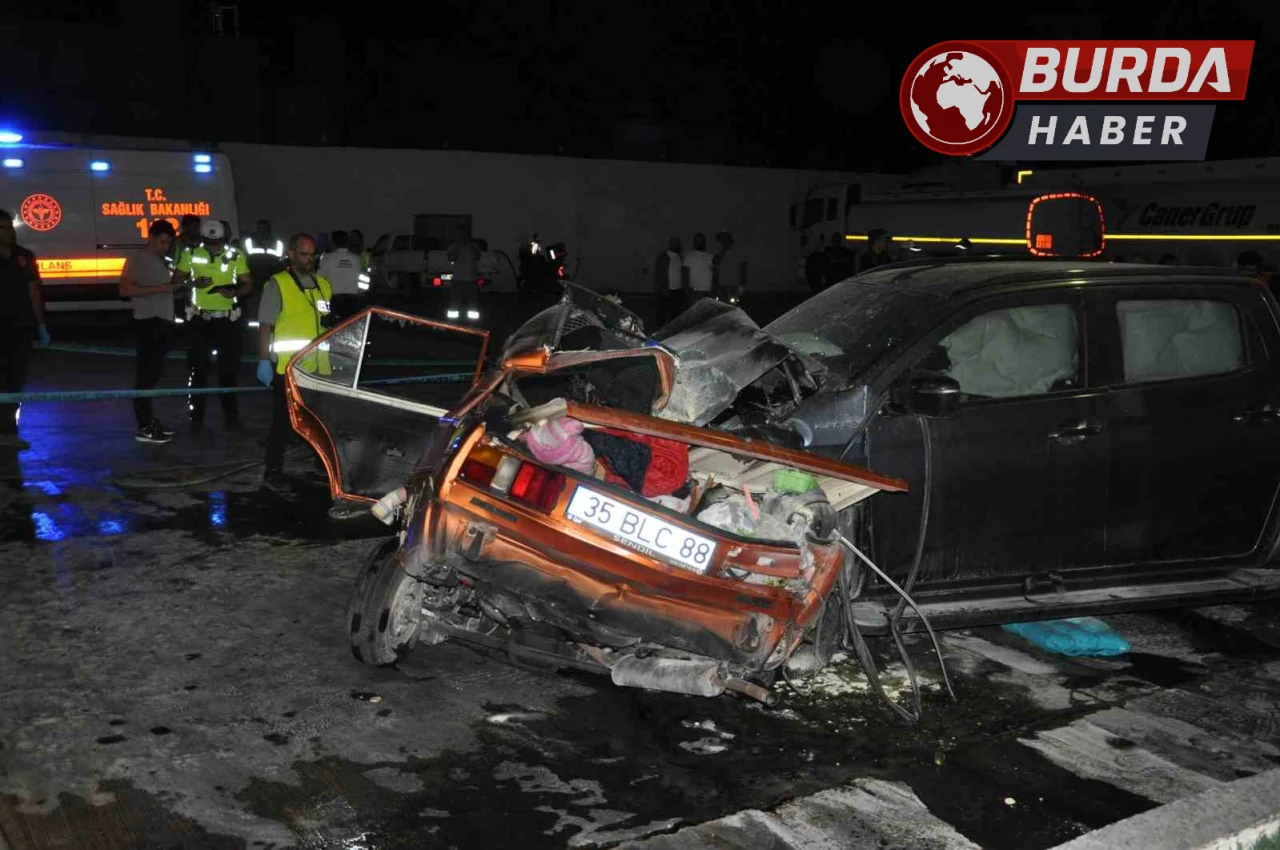 Manisa’nın Salihli ilçesinde meydana gelen feci kazada, karşı şeride geçen otomobilin pikapla çarpışması sonucu meydana gelen kazada 1’i çocuk 5 kişi hayatını kaybetti, 3’ü çocuk 6 kişi ise yaralandı.