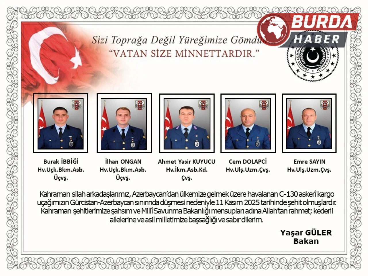 Milli Savunma Bakanlığı (MSB), Azerbaycan'dan Türkiye'ye dönmek üzere havalanan C-130 askeri kargo uçağının Gürcistan-Azerbaycan sınırında düştüğünü ve 20 askerin şehit olduğunu duyurdu.