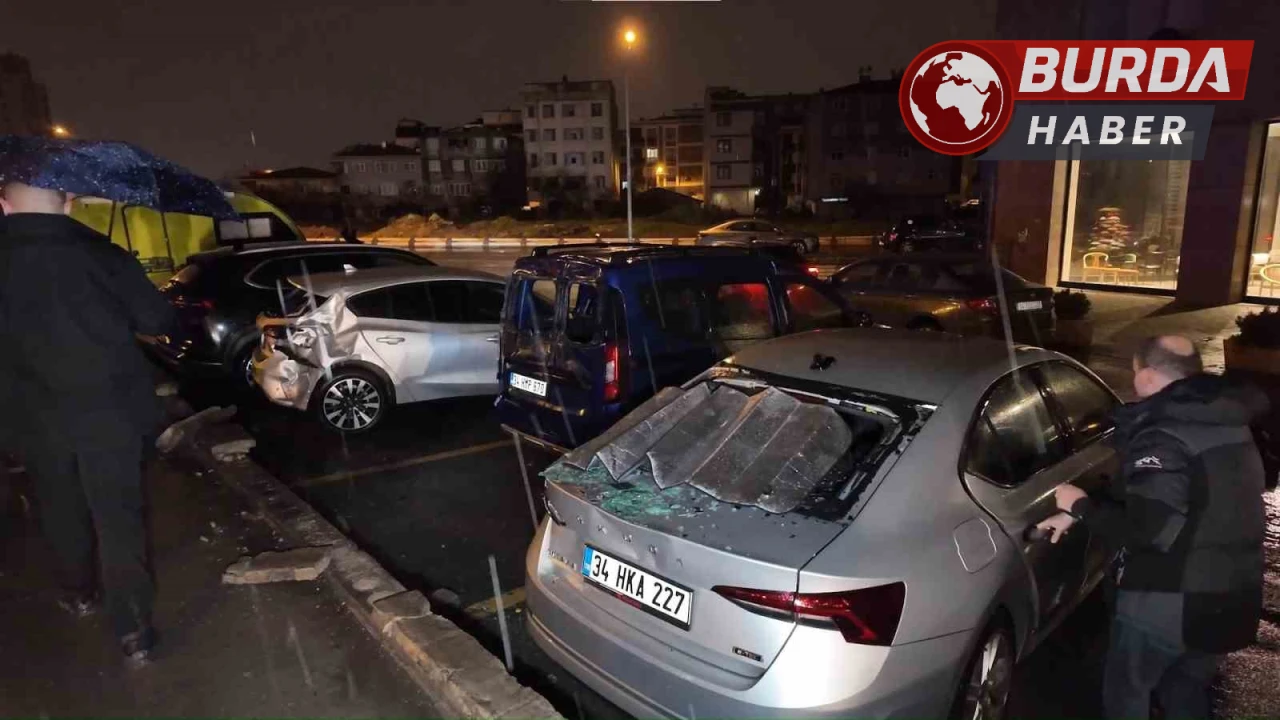 Sancaktepe’de meydana gelen trafik kazasında, aşırı hız yapan bir otomobil kontrolden çıkarak park halindeki 4 araca çarptı.