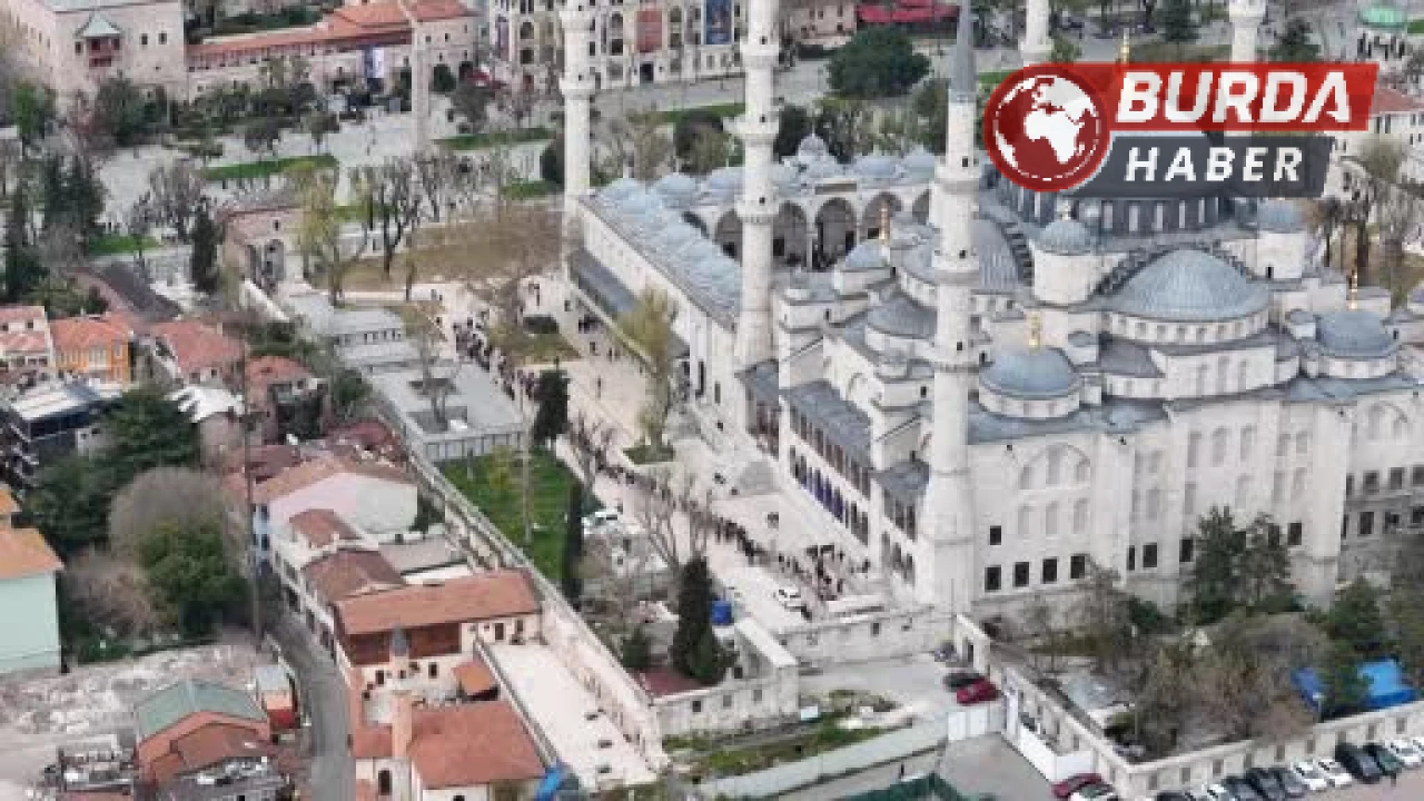 Sultanahmet Camii’nde restorasyon çalışmalarının tamamlanmasının ardından cami çevresinde uzun ziyaretçi kuyrukları oluştu. Tarihi ibadethane havadan görüntülenirken, yerli ve yabancı turistlerin yoğunluğu dikkat çekti.