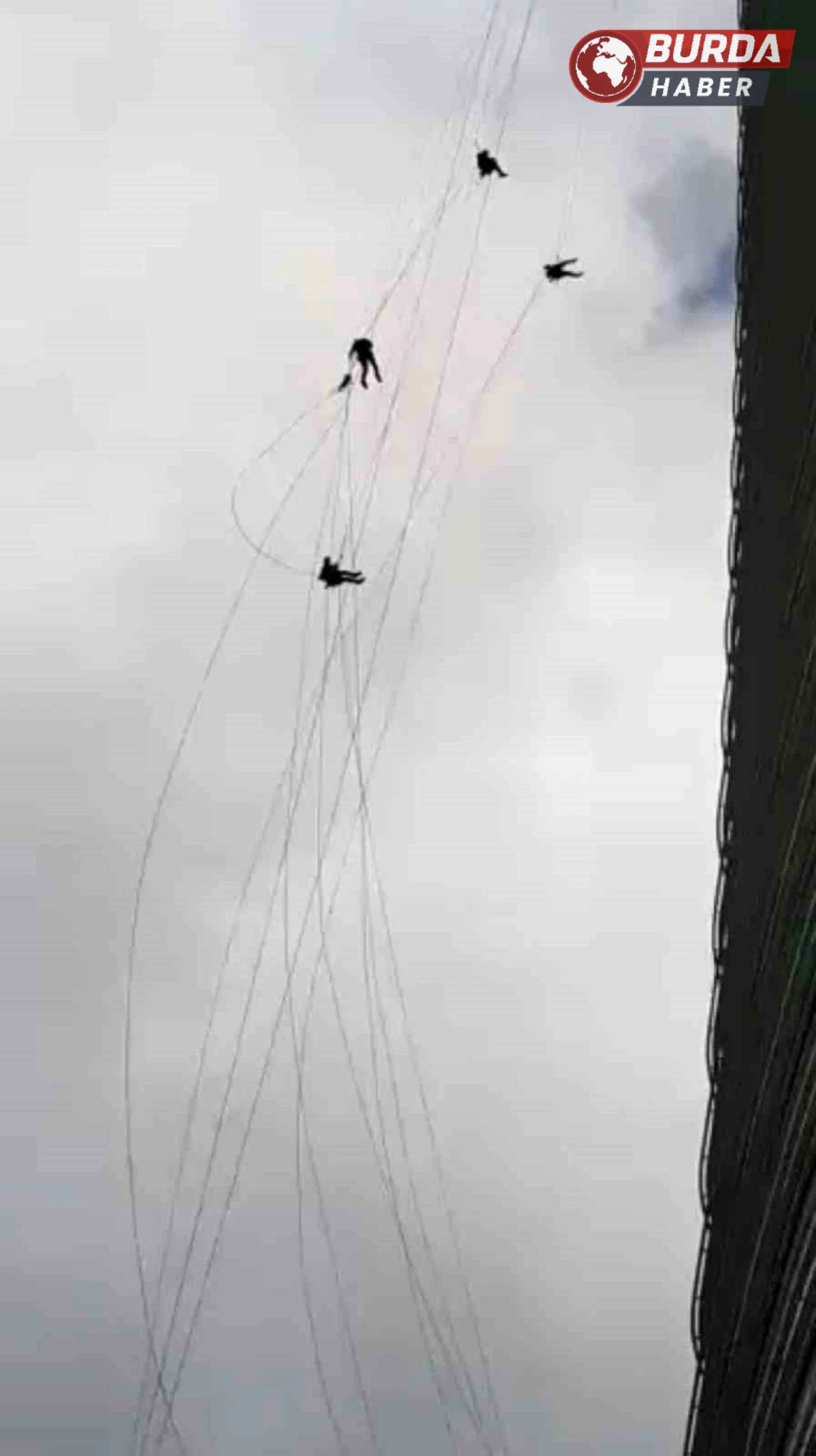Rüzgarın etkisiyle dengeyi kaybeden işçilerin yaşadığı zor anlar, çevredeki vatandaşlar tarafından cep telefonu kameralarıyla kaydedildi. Halatlara sıkıca tutunarak tehlikeli durumu atlatmaya çalışan işçilerin çabaları, görenleri dehşete düşürdü.